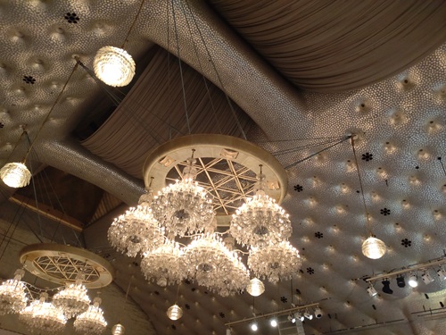 天井のブツブツ・・・これがなんと、アコヤ貝30万枚を貼りつけてあるそうです。