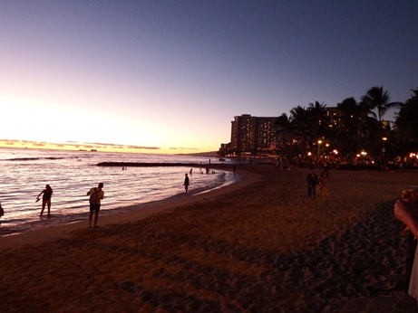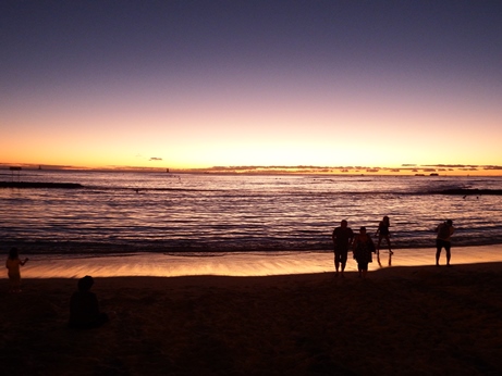 ビーチのパノラマ写真。ハワイだー!って感じですね。