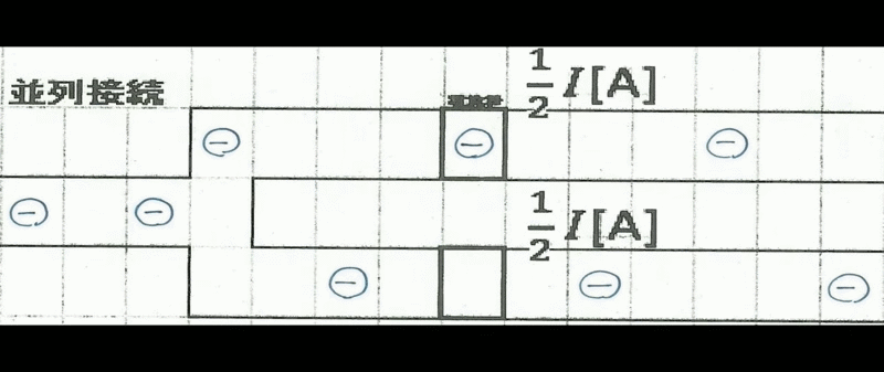通過する電子の数が半分になると、電流の大きさも半分になる。分かりやすいですね。